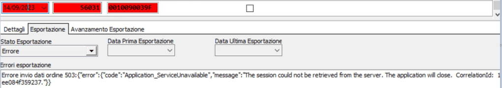 Errore invio dati ordine 503:{“error”:{“code”:”Application_ServiceUnavailable”,”message”:”The session could not be retrieved from the server. The application will close. CorrelationId: 173959cf-96d4-476f-8d32-ee084f359237.”}}