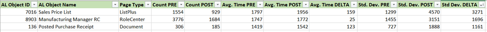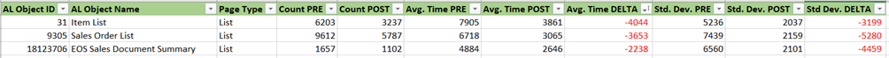 Considering this example, simply export into Excel the list and color the negative values in red for both Average Time and Standard Deviation Deltas. Some fact sheet: