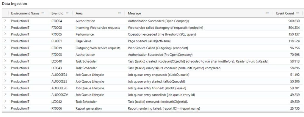 Telemetry Event IDs in Application Insights – Business Central | Microsoft Learn