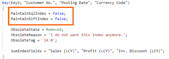 What you (or some) might think of, is that simply declaring obsolete = removed such key, as shown below, you get the SQL index and its V-SIFT dropped.