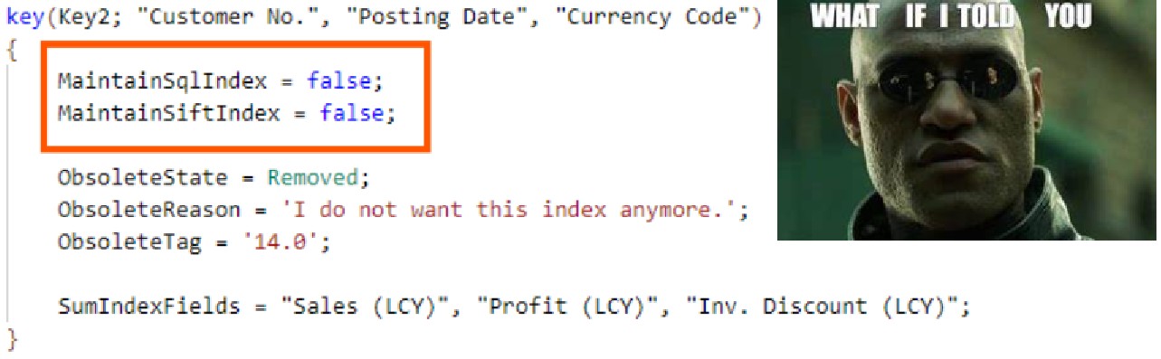 What you (or some) might think of, is that simply declaring obsolete = removed such key, as shown below, you get the SQL index and its V-SIFT dropped.