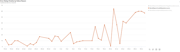 Let’s now filter this last chart on the specific failure reason reported by customer: InvalidOperation .