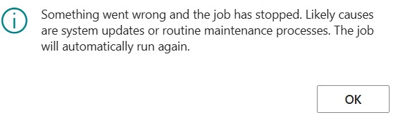 If you want to plan the best update window for your customer, you must use telemetry to better understand when platform hotfixes are applied and avoid critical long running business processes (e.g. MRP calculation) being broken, every now and then, by them. See below a typical error message in Job Queue Log Entry record, when these happens: