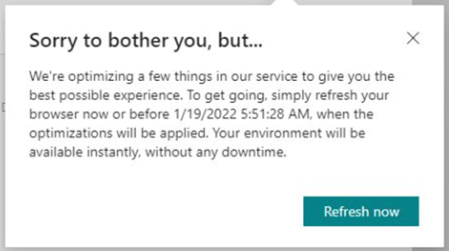 - Add a smaller update window (e.g. 1-hour) for Application hotfixes in Tenant Admin Center. 6-hour is a bit too much for quite small patches.