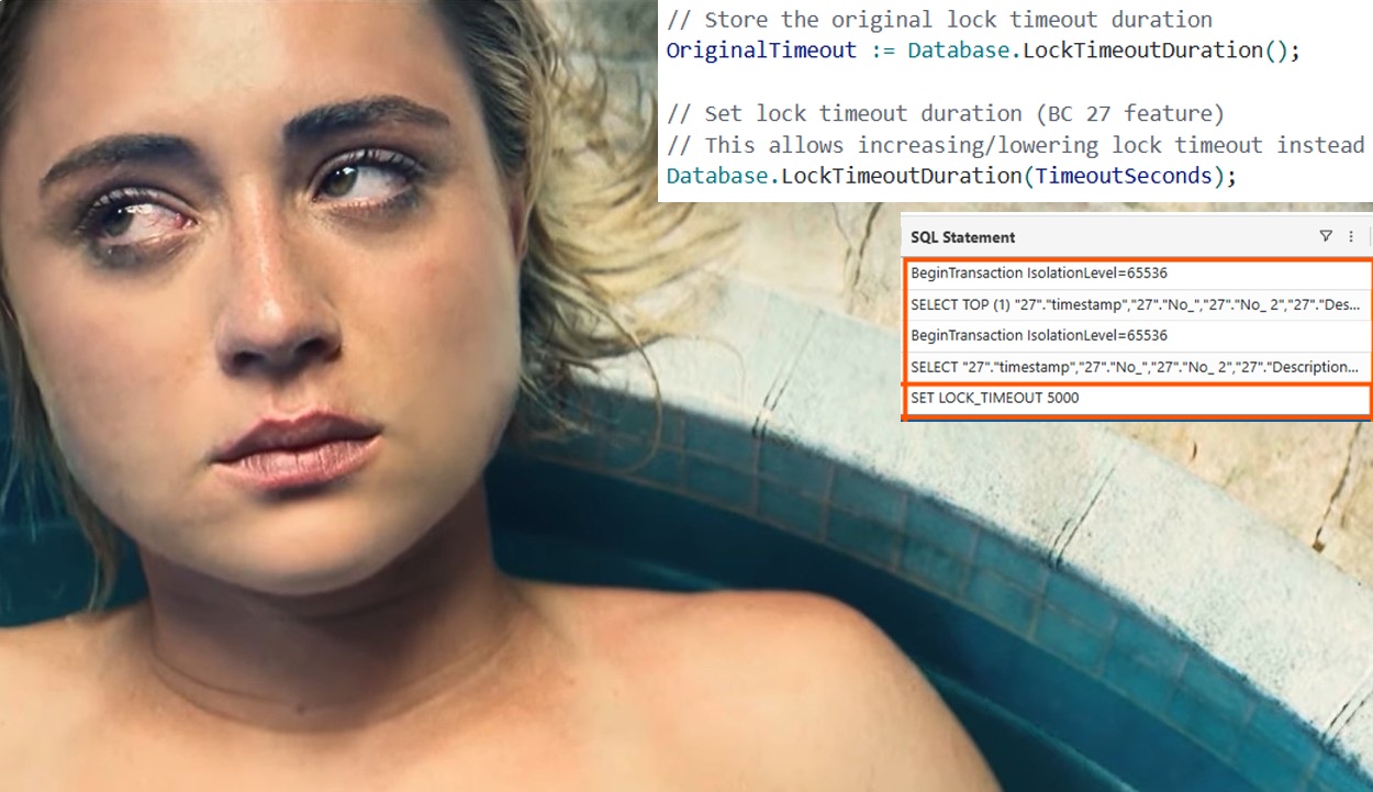 Since Dynamics 365 Business Central 2025 Wave 2 (version 27), it is possible to override the value via AL Code within a specific statement(-ish) and elevate or reduce the lock timeout period at will (and considering Murphy’s Law, this will surely be the transaction started by one of the guys that is spending most of the time at the coffee machine…).