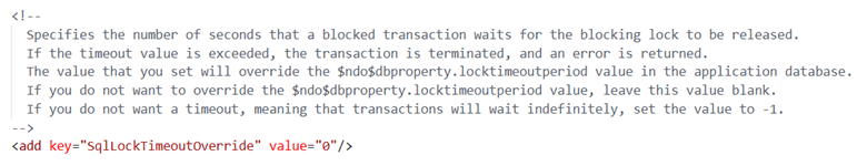 How far can you go in setting the lock timeout? Is that Infinite?… Well, try to set it to 0.