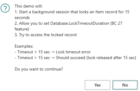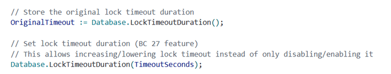 Database.LockTimeoutDuration([Integer]) Method – Business Central | Microsoft Learn