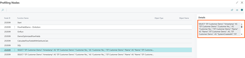 SELECT "DT Customer Demo"."timestamp" AS "DT Customer Demo"."Customer No_" AS "Customer No_", "DT Customer Demo"."Name" AS "Name", "DT Customer Demo".AS, "DT Customer Demo".AS "SystemCreatedAt", "DT Customer Demo".AS "SystemCreatedBy", "DT Customer Demo".AS "SystemModifiedAt", "DT Customer Demo".AS "SystemModifiedBy", ISNULL("SUB$DT Sales Entry$0"."DT Sales Entry$0$No_ of Sales Entries$CNT", 0) AS "No_ of Sales Entries", ISNULL("SUB$DT Sales Entry$0"."DT Sales Entry$0$Last Sales Date$MAX$Posting Date", '1753.01.01') AS "Last Sales Date"FROM dbo."CRONUS USA, Inc_$DT Customer Demo" AS "DT Customer Demo" WITH(READCOMMITTED) OUTER APPLY ( SELECT TOP (1) COUNT("DT Sales Entry$0"."Entry No_") AS "DT Sales Entry$0$No_ of Sales Entries$CNT", MAX("DT Sales Entry$0"."Posting Date") AS "DT Sales Entry$0$Last Sales Date$MAX$Posting Date" FROM dbo."CRONUS USA, I... )WHERE (" DT Sales Entry $ 0 "." Customer No_ "=" DT Customer Demo "." Customer No_ ")) AS " SUB $ DT Sales Entry $ 0 " ORDER BY " Customer No_ " ASC OPTION(OPTIMIZE FOR UNKNOWN, FAST