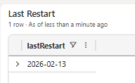 …| where customDimensions.eventId == "RT0026"| project timestamp , lastRestart = format_datetime(datetime_add('millisecond', - toint(customDimensions.databaseStartedDuration), timestamp),'yyyy-MM-dd')| distinct lastRestart…