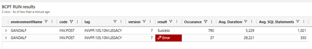 What I did, then, is just to export in Excel all telemetry rows and explain that I was running BCPT to measure the old inventory posting. No more than that.